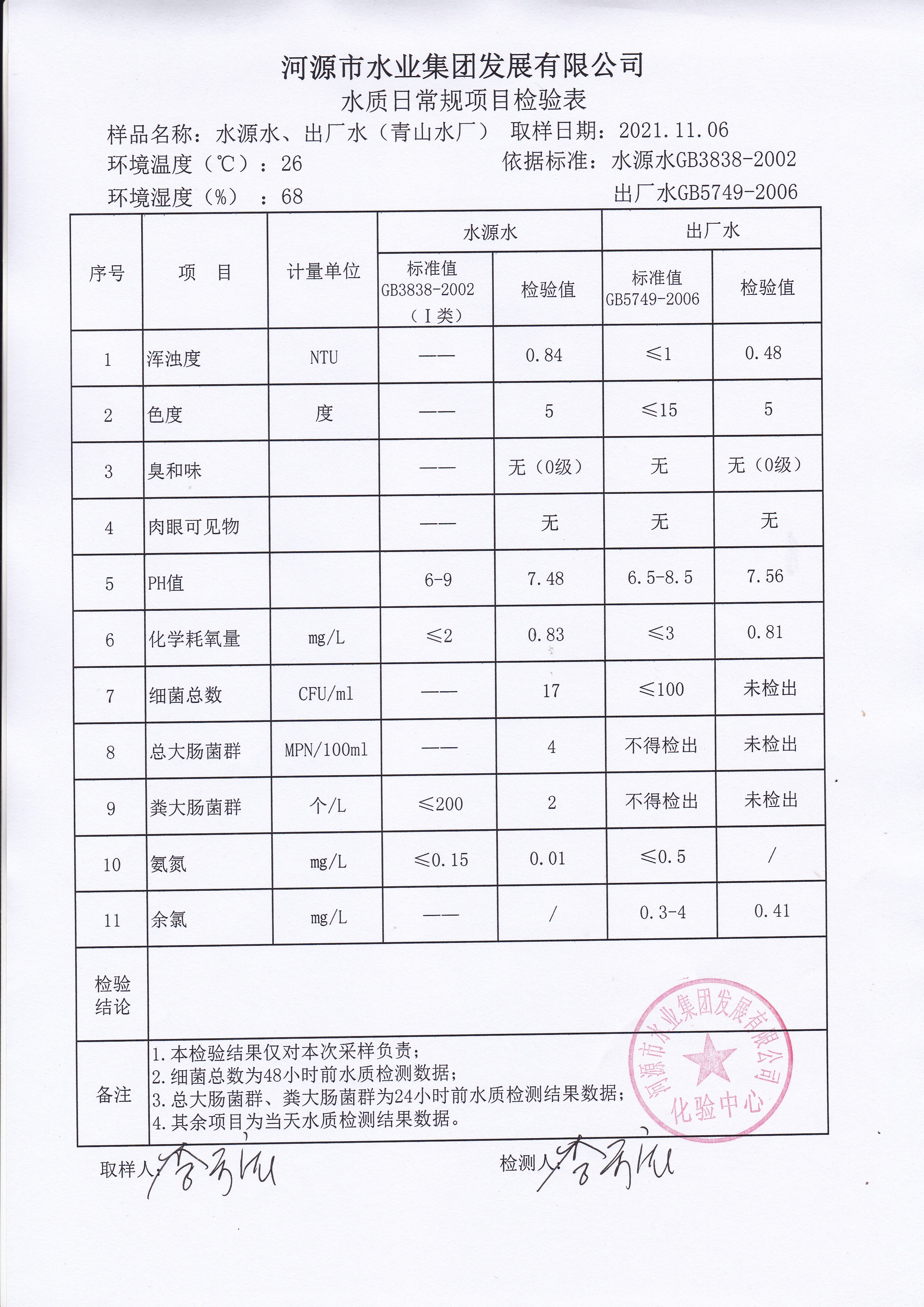 2021年11月6日水質(zhì)檢驗(yàn)報(bào)告