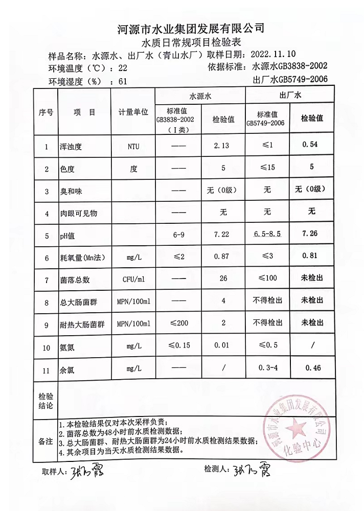 2022年11月10日水質(zhì)檢驗(yàn)報(bào)告