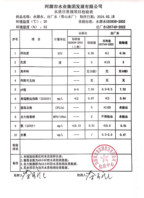 2024年2月15日水質(zhì)檢驗(yàn)報(bào)告 ???