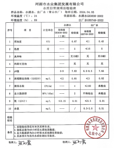 2024年4月5日水質(zhì)檢驗(yàn)報(bào)告