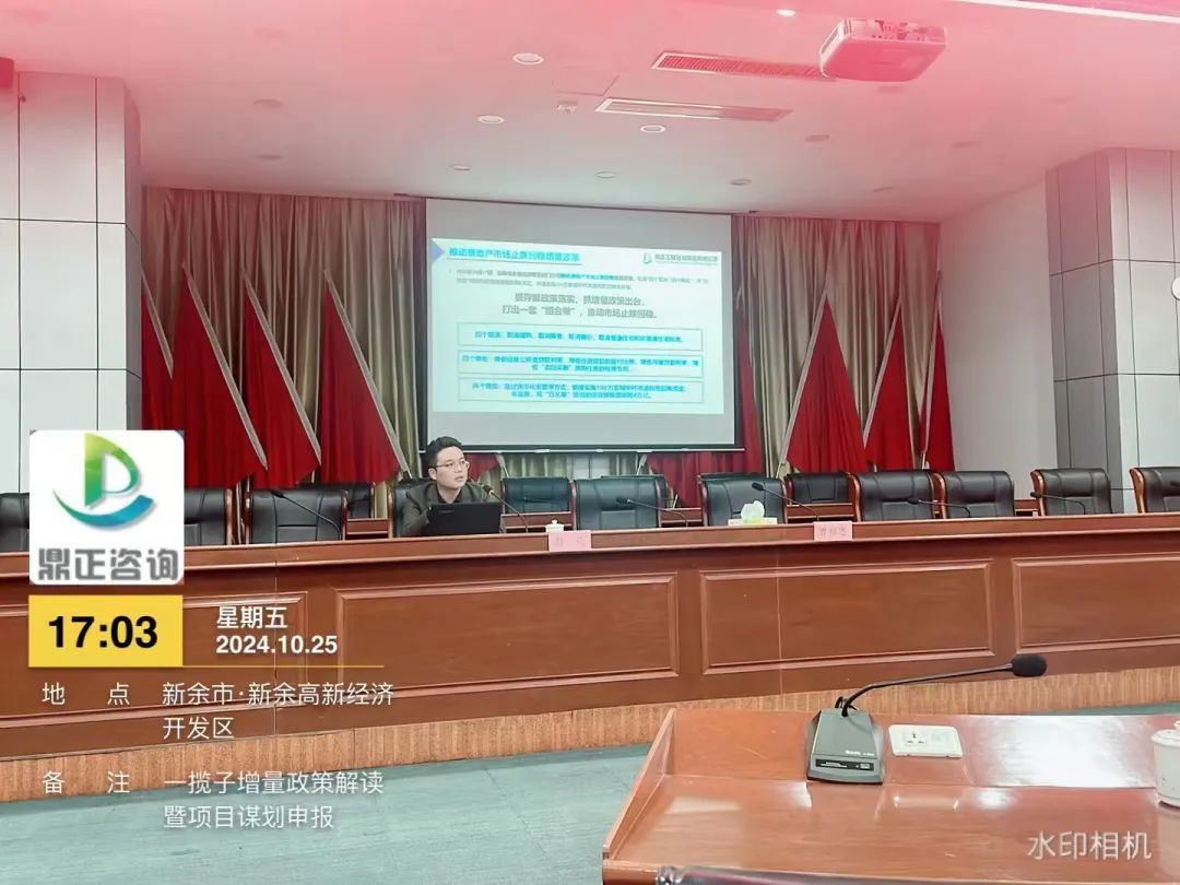 自9月下旬以來(lái),國(guó)務(wù)院等多部門(mén)密集發(fā)布了一攬子增量政策,并引發(fā)了社會(huì)各界的廣泛關(guān)注。為搶抓增量政策窗口期,提升地方政府項(xiàng)目謀劃儲(chǔ)備質(zhì)量和項(xiàng)目謀劃水平,精準(zhǔn)擴(kuò)大有效投資。10月25日,鼎正副總經(jīng)理彭亮受邀為新余高新區(qū)政府作《一攬子增量政策解讀暨項(xiàng)目謀劃申報(bào)》的專(zhuān)題培訓(xùn)。