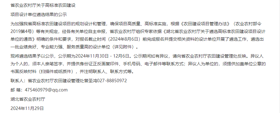 近日,鼎正成功入選湖北省農(nóng)業(yè)農(nóng)村廳高標(biāo)準(zhǔn)農(nóng)田建設(shè)項目遴選設(shè)計單位。