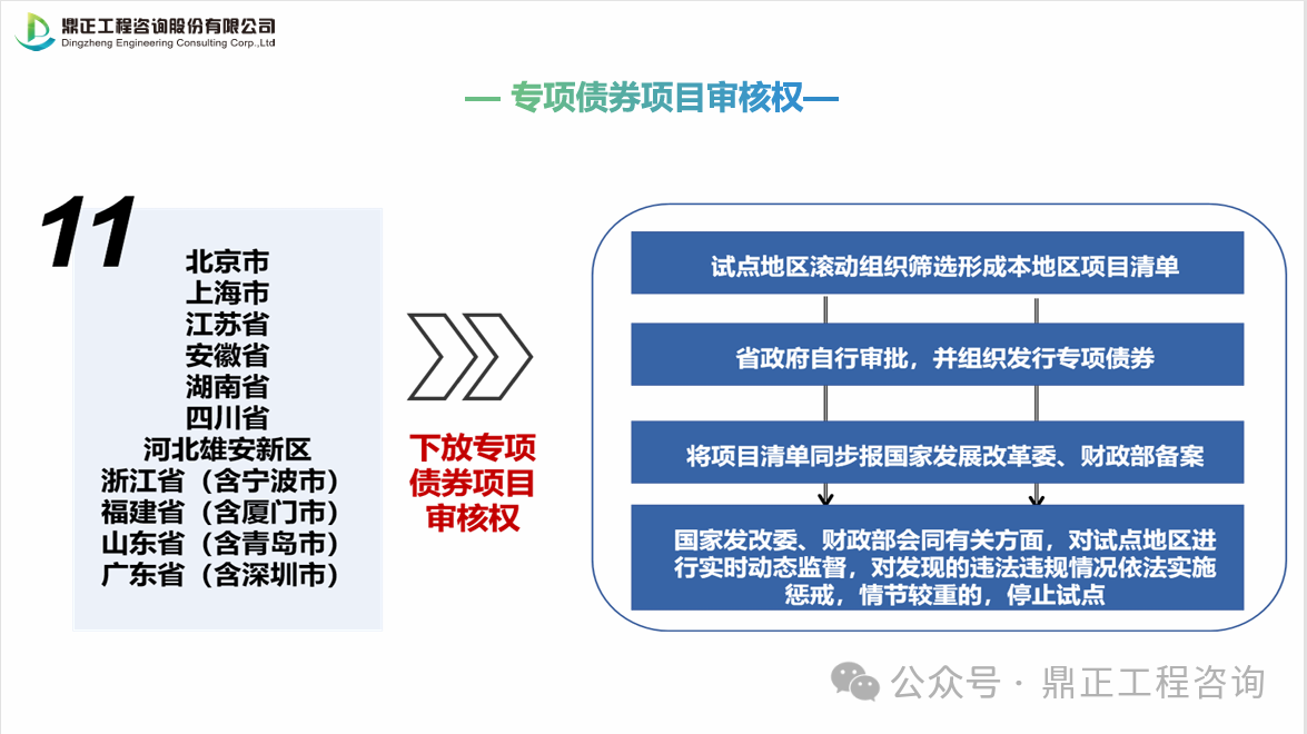 地方政府專項(xiàng)債券項(xiàng)目“自審自發(fā)”試點(diǎn)地區(qū)名單:北京市、上海市、江蘇省、浙江?。ê瑢幉ㄊ校?、安徽省、福建?。ê瑥B門市)、山東?。ê鄭u市)、湖南省、廣東?。ê钲谑校?、四川省、河北雄安新區(qū)等11個(gè)省市。