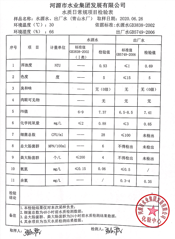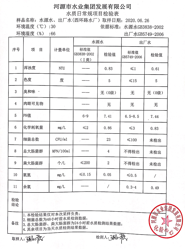 2020年6月26日水質(zhì)檢驗(yàn)報(bào)告