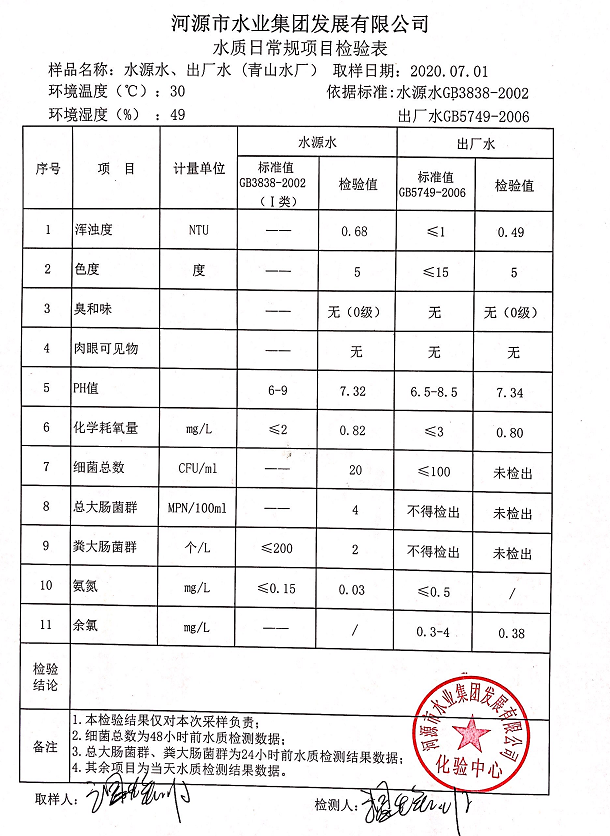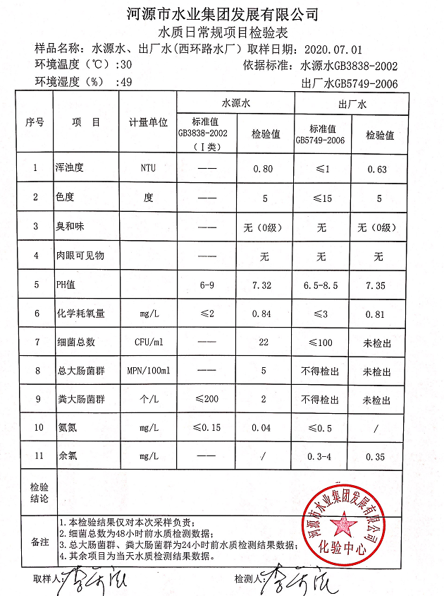 2020年7月1日水質(zhì)檢驗(yàn)報(bào)告