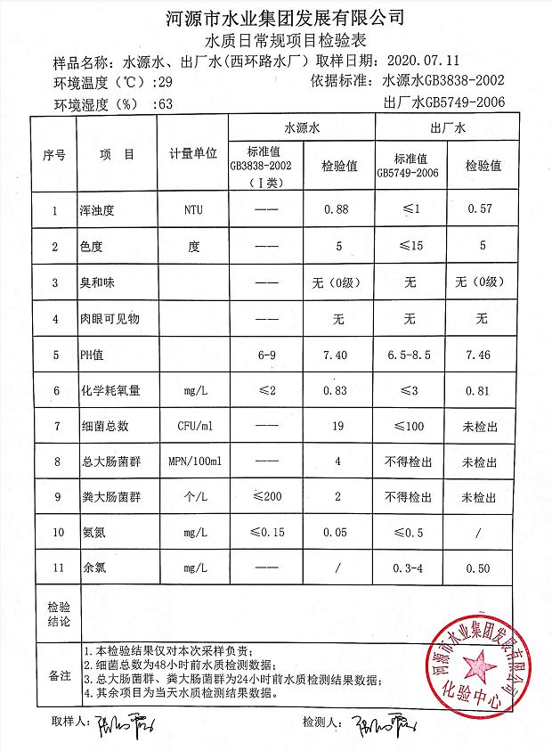 2020年7月11日水質(zhì)檢驗(yàn)報(bào)告