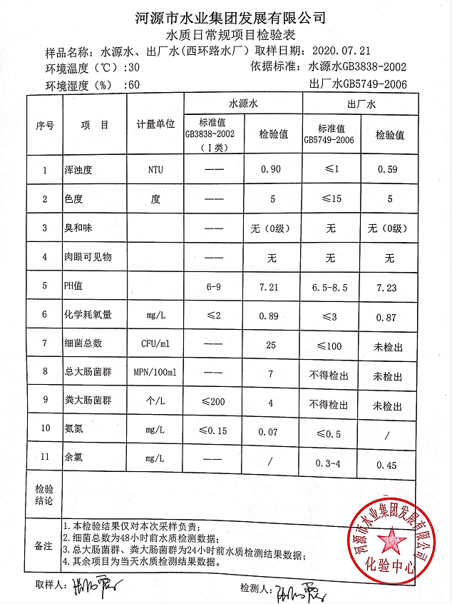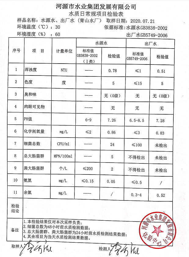 2020年7月21日水質(zhì)檢驗報告