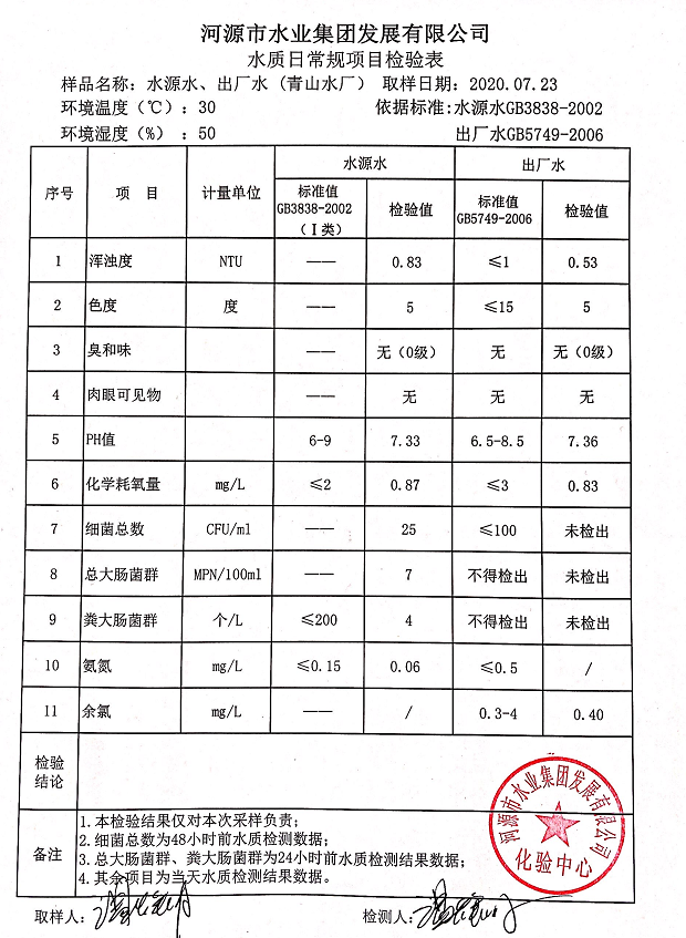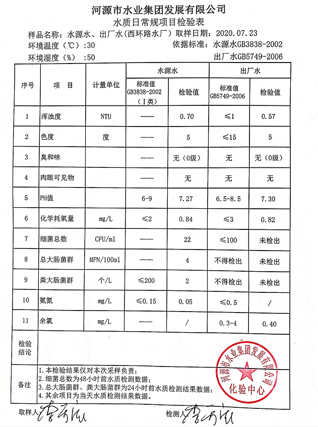 2020年7月23日水質(zhì)檢驗(yàn)報(bào)告