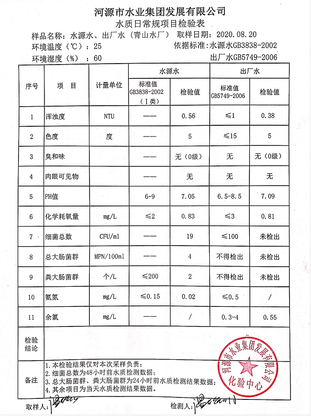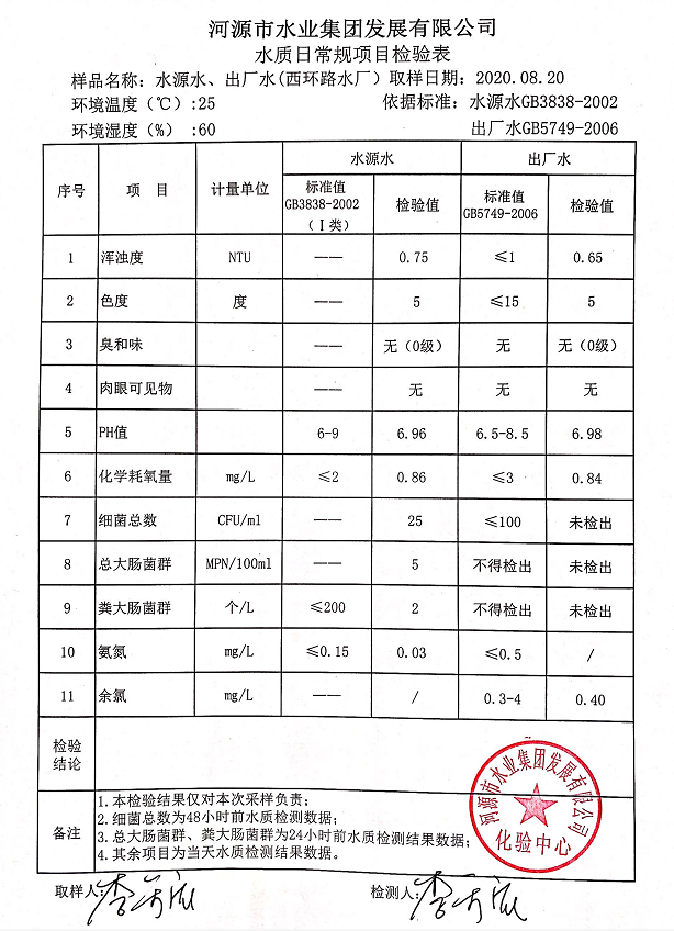 2020年8月20日水質(zhì)檢驗(yàn)報(bào)告