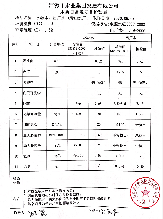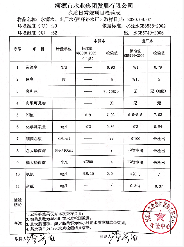 2020年9月7日水質(zhì)檢驗(yàn)報(bào)告