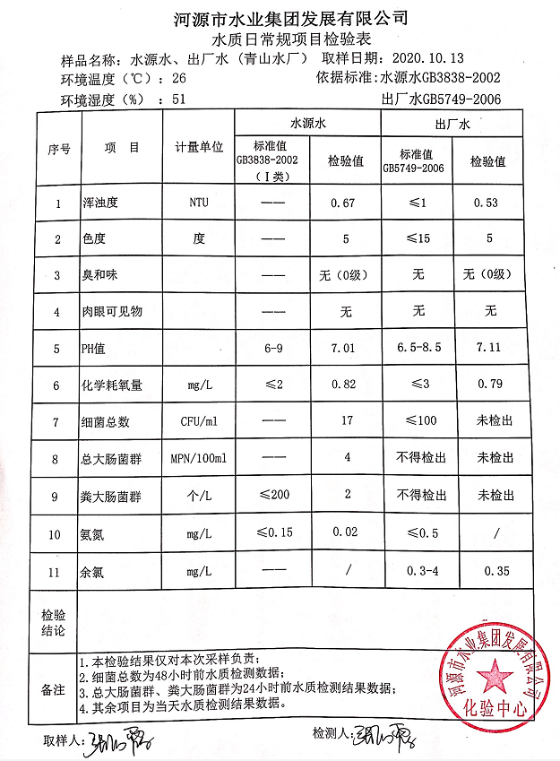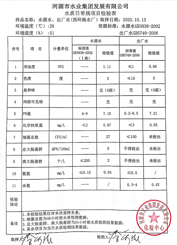 2020年10月13日水質(zhì)檢驗報告