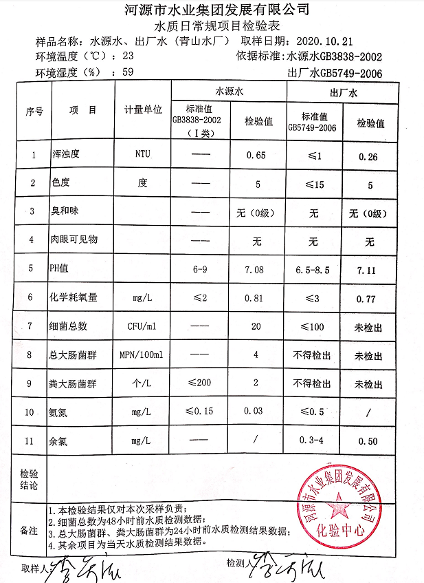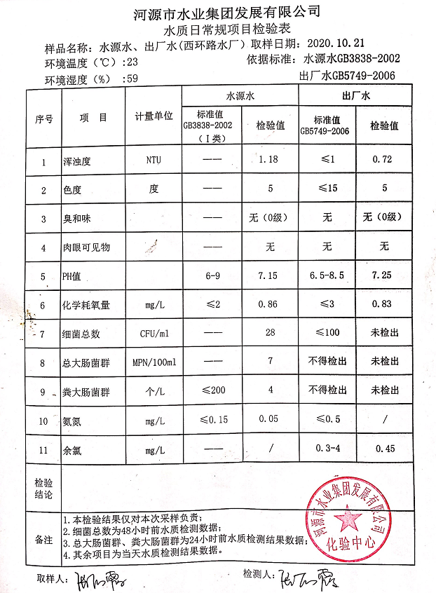 2020年10月21日水質(zhì)檢驗(yàn)報(bào)告