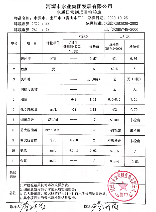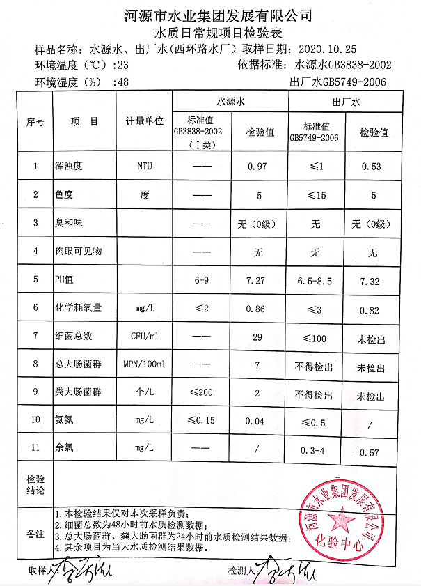 2020年10月25日水質(zhì)檢驗(yàn)報(bào)告