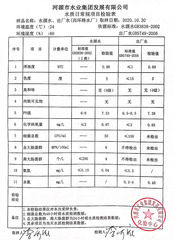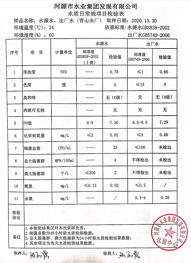 2020年10月30日水質(zhì)檢驗(yàn)報(bào)告