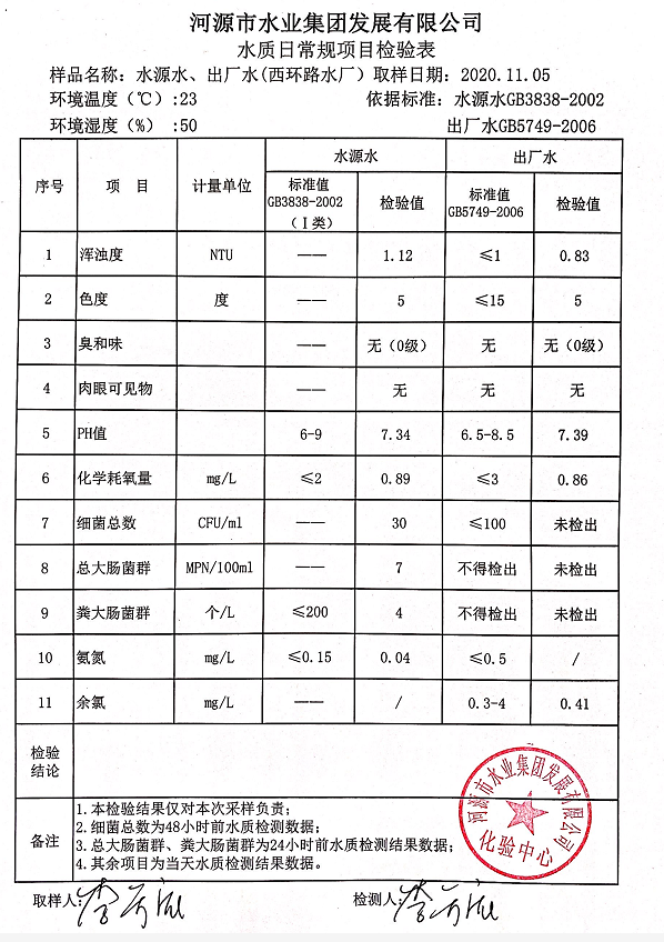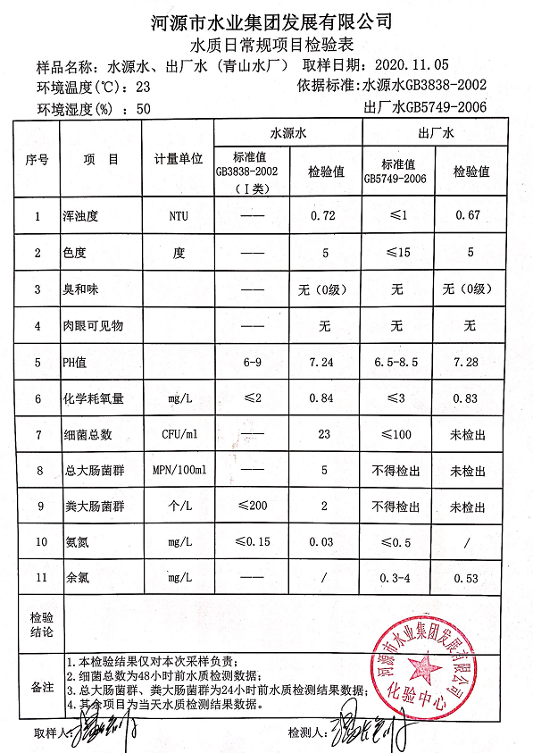 2020年11月5日水質(zhì)檢驗報告