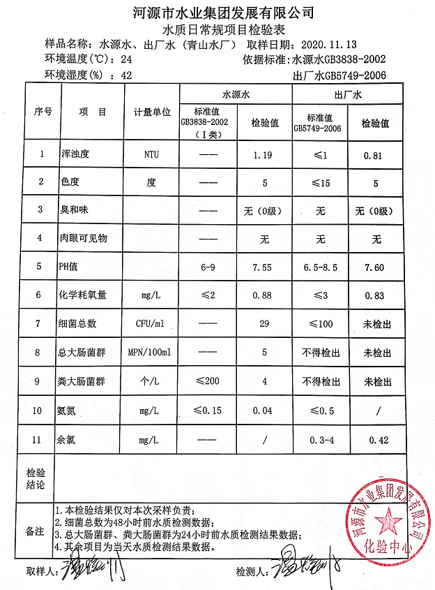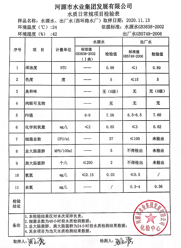 2020年11月13日水質(zhì)檢驗(yàn)報(bào)告