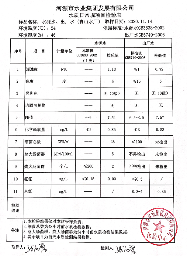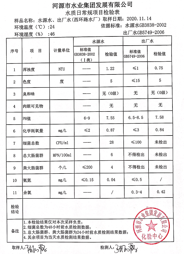 2020年11月14日水質(zhì)檢驗(yàn)報(bào)告