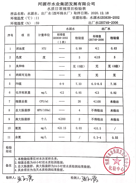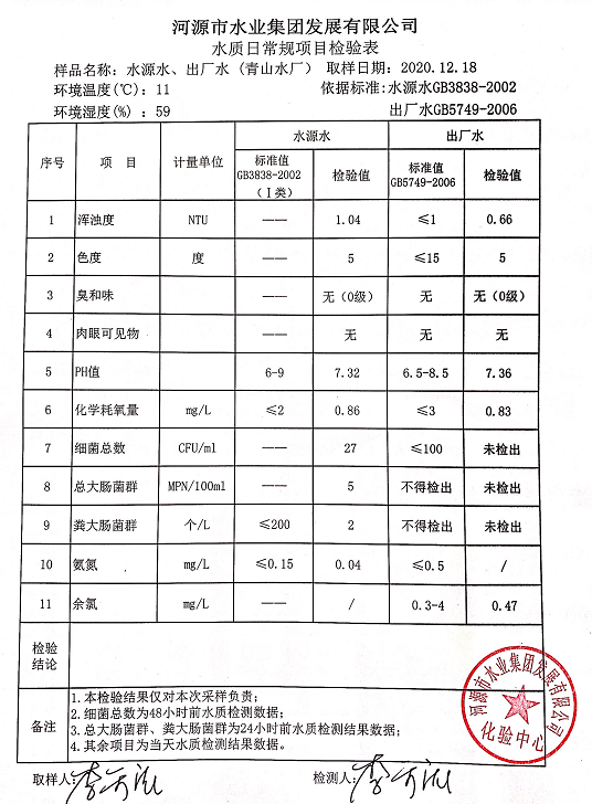 2020年12月18日水質(zhì)檢驗(yàn)報(bào)告