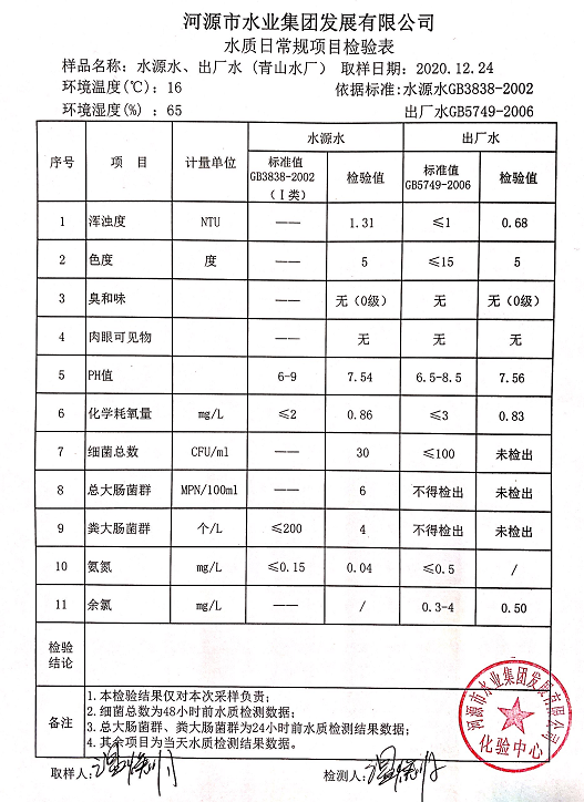 2020年12月24日水質(zhì)檢驗(yàn)報告