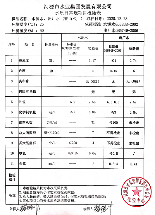 2020年12月28日水質(zhì)檢驗報告
