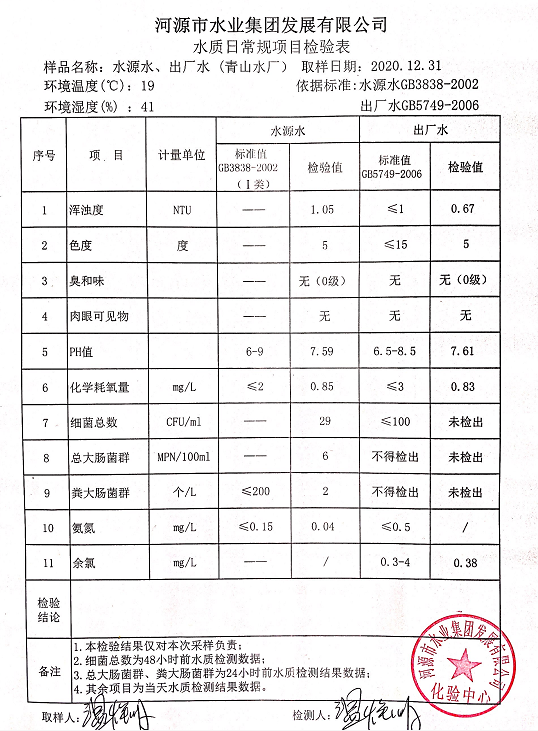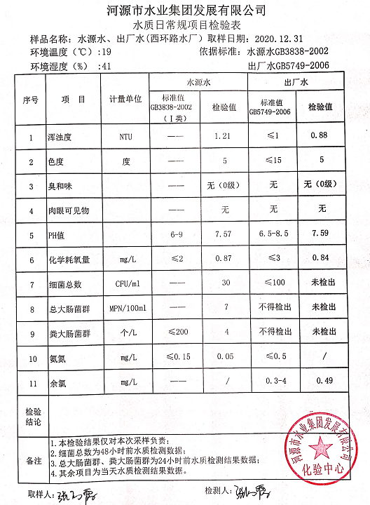 2020年12月31日水質(zhì)檢驗(yàn)報(bào)告