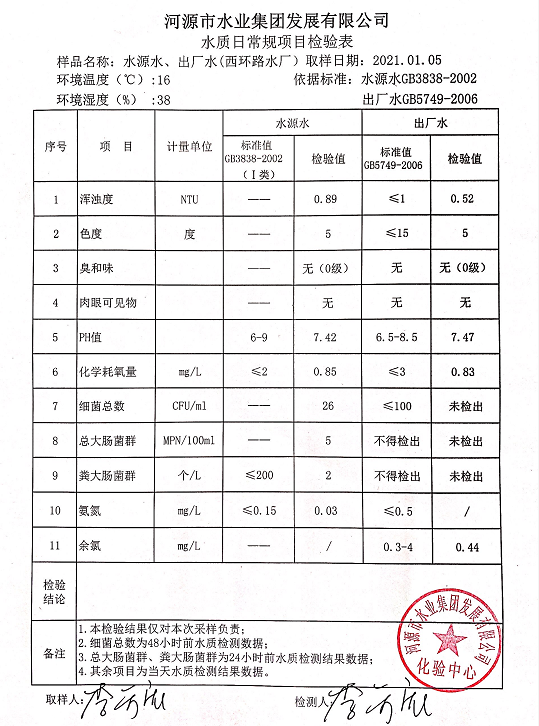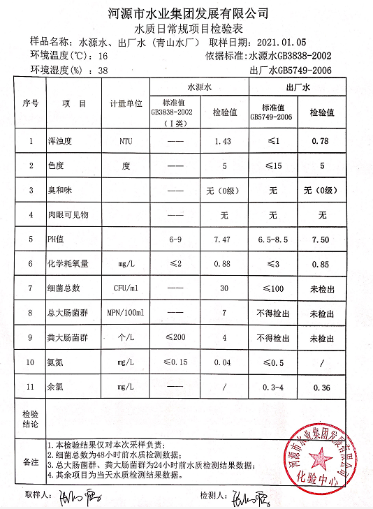 2021年1月5日水質(zhì)檢驗(yàn)報(bào)告