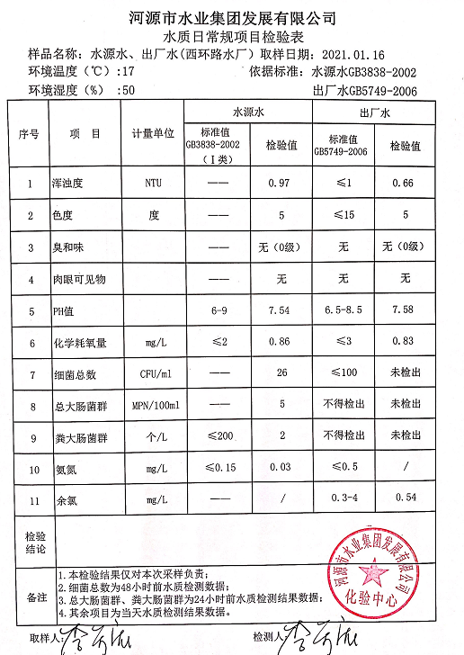 2021年1月16日水質(zhì)檢驗(yàn)報(bào)告