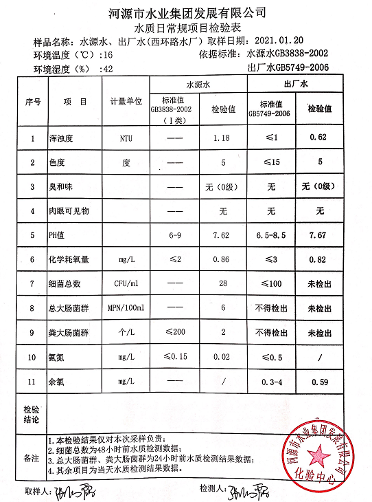 2021年1月20日水質(zhì)檢驗(yàn)報(bào)告