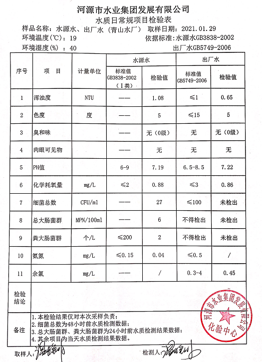 2021年1月29日水質檢驗報告