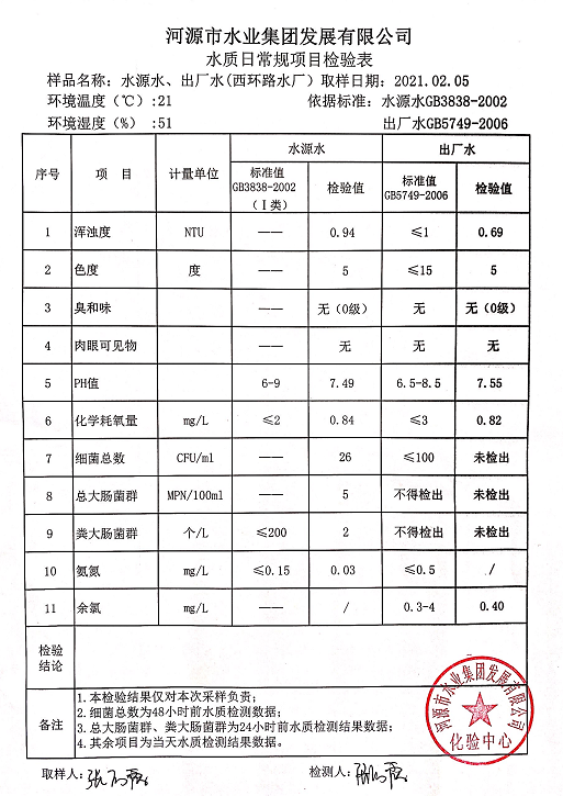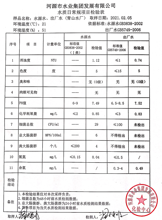 2021年2月5日水質(zhì)檢驗(yàn)報告