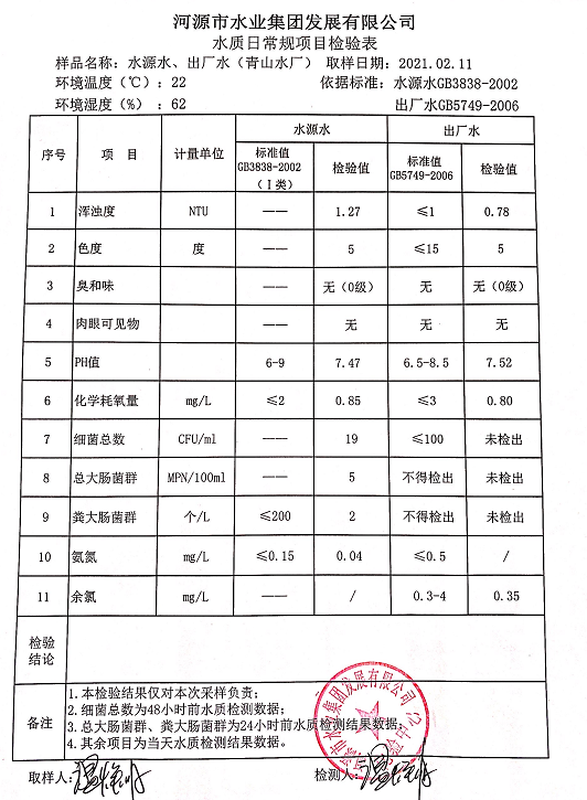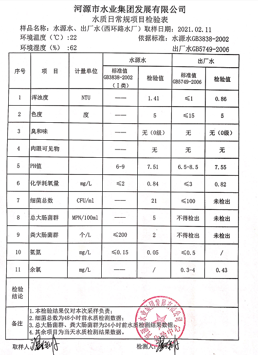 2021年2月11日水質(zhì)檢驗報告