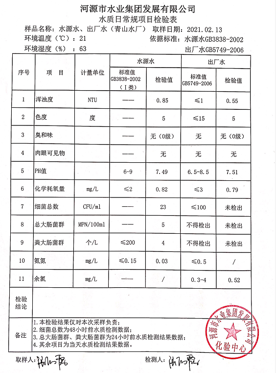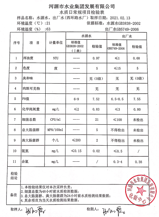 2021年2月13日水質(zhì)檢驗(yàn)報(bào)告