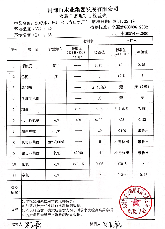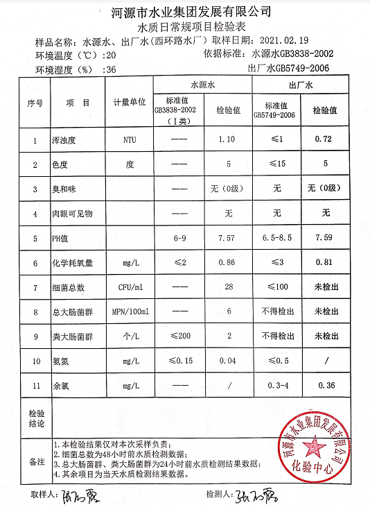 2021年2月19日水質檢驗報告
