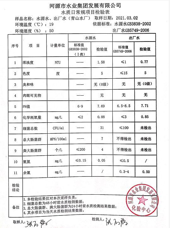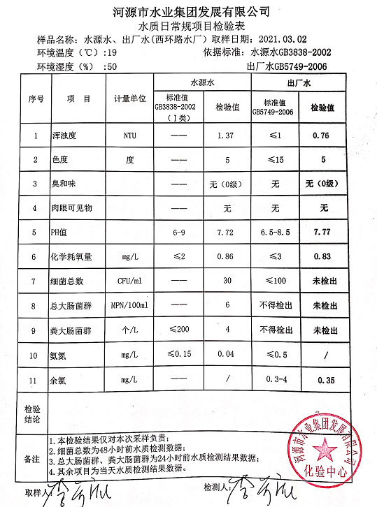 2021年3月2日水質(zhì)檢驗(yàn)報(bào)告