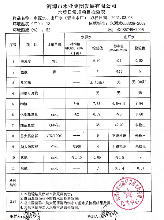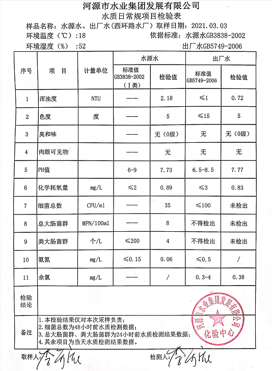 2021年3月3日水質檢驗報告