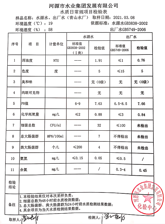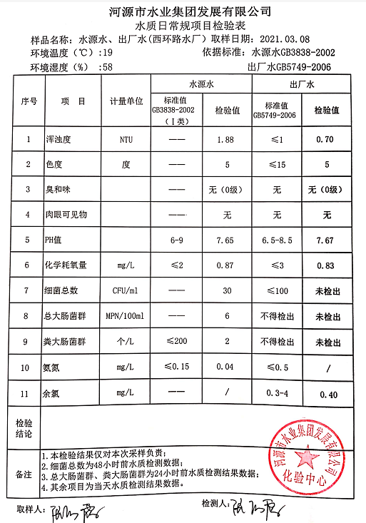 2021年3月8日水質(zhì)檢驗報告