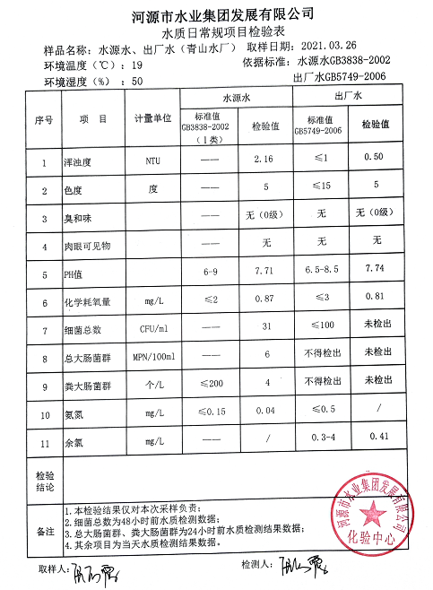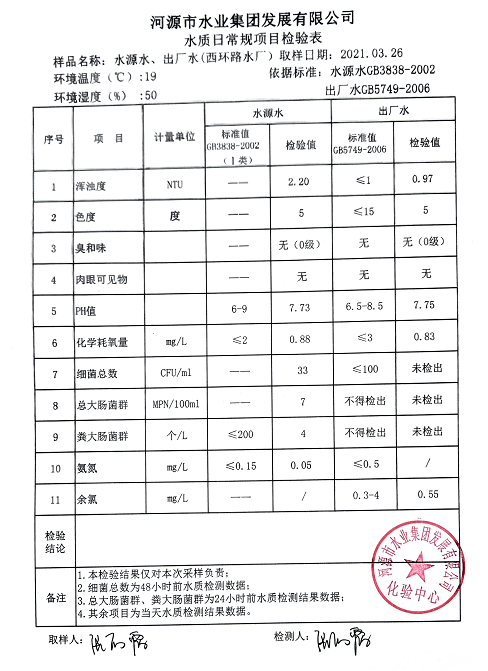 2021年3月26日水質(zhì)檢驗(yàn)報(bào)告