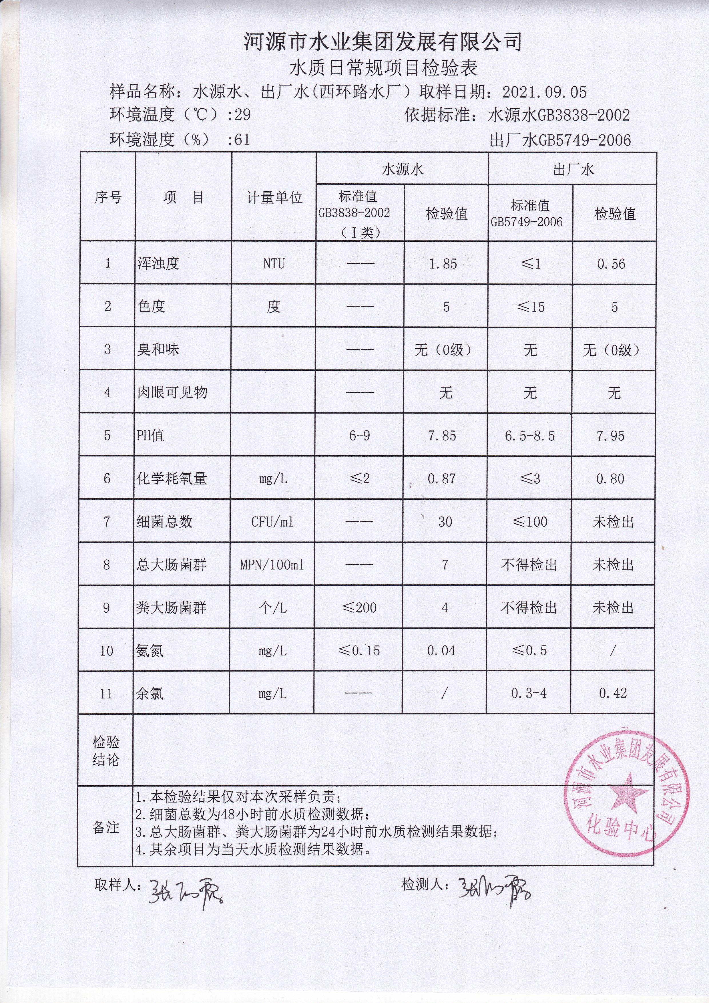 2021年9月5日水質檢驗報告 ????
