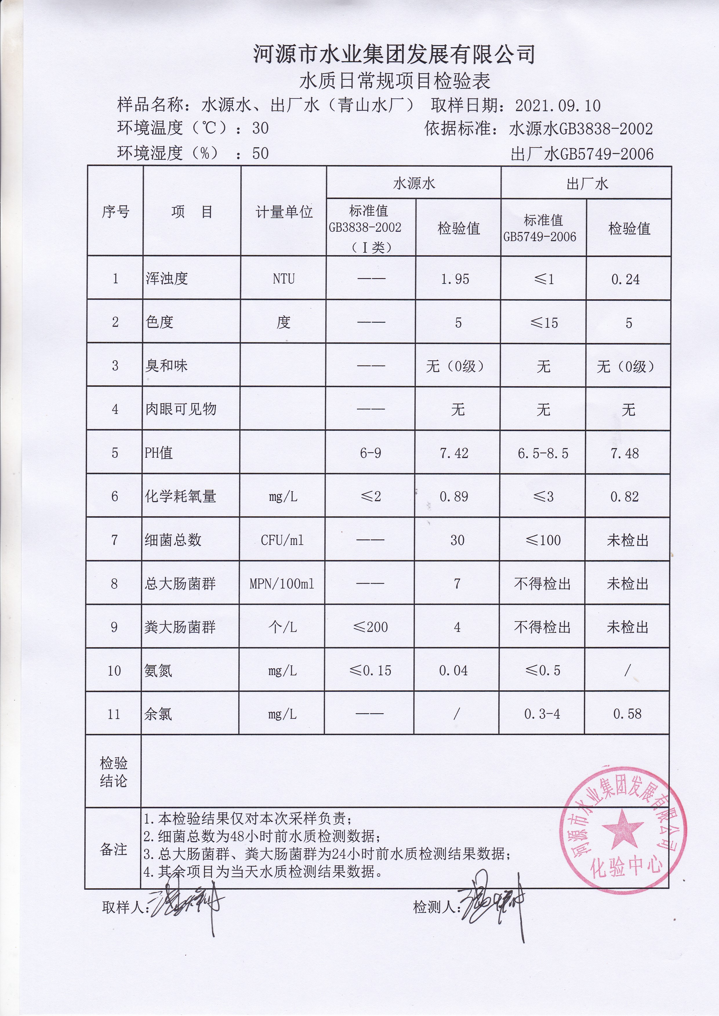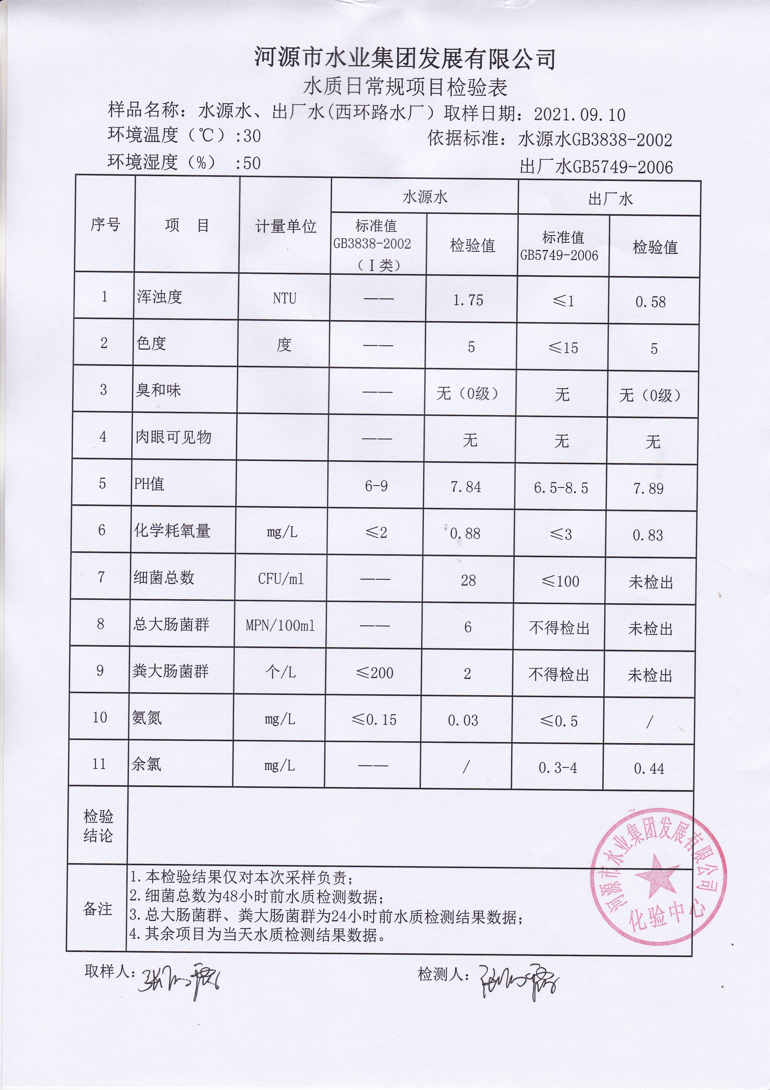 2021年9月10日水質(zhì)檢驗(yàn)報(bào)告 ??