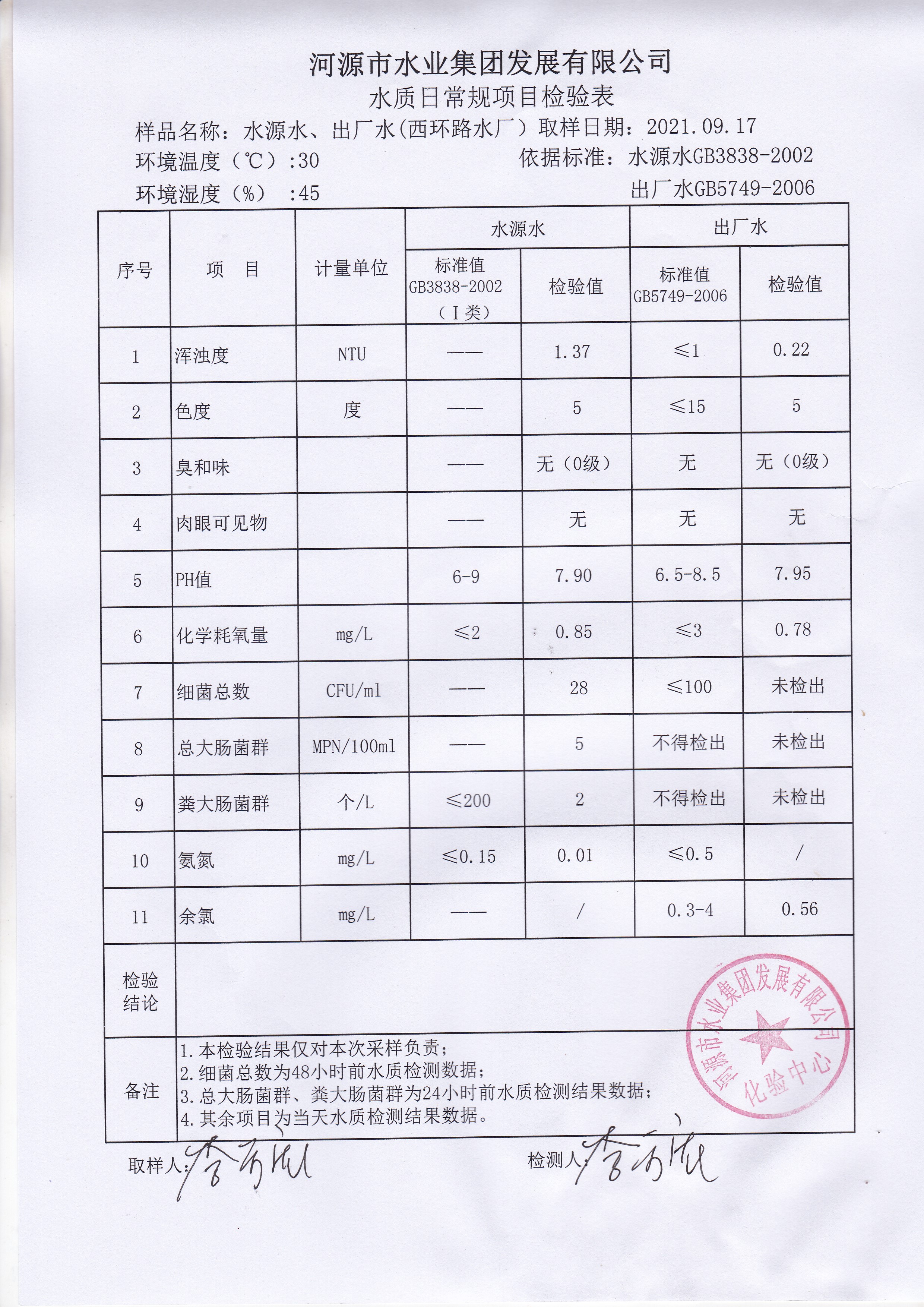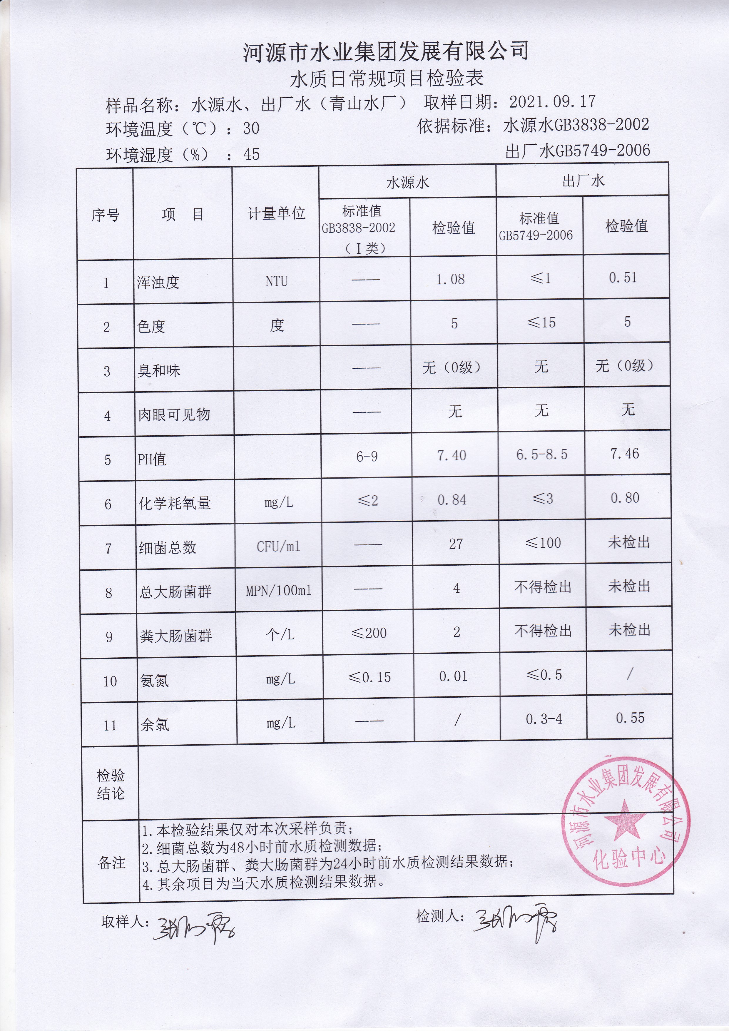 2021年9月17日水質(zhì)檢驗(yàn)報(bào)告 ??