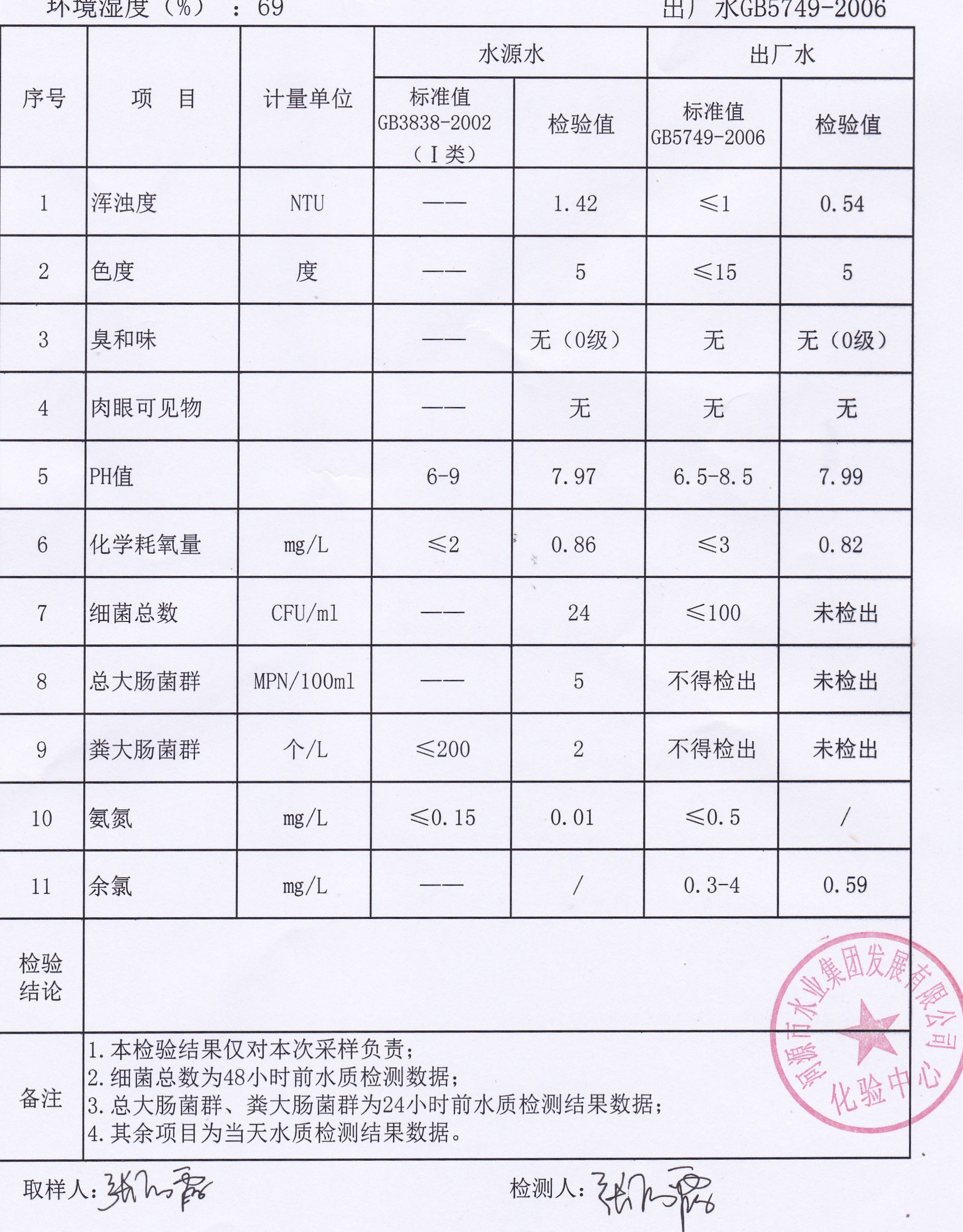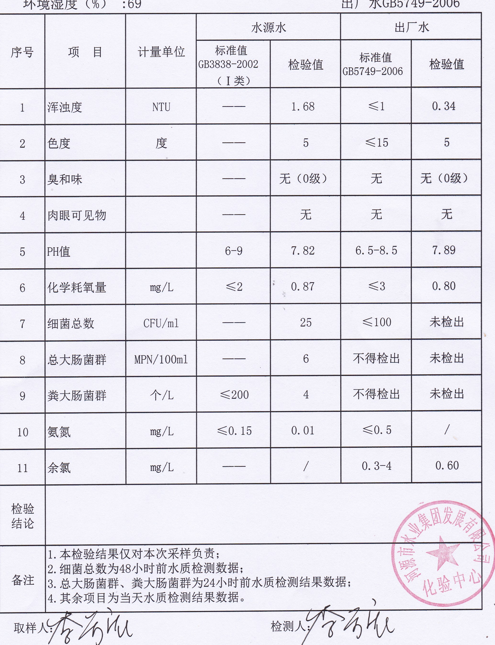 2021年10月12日水質(zhì)檢驗報告