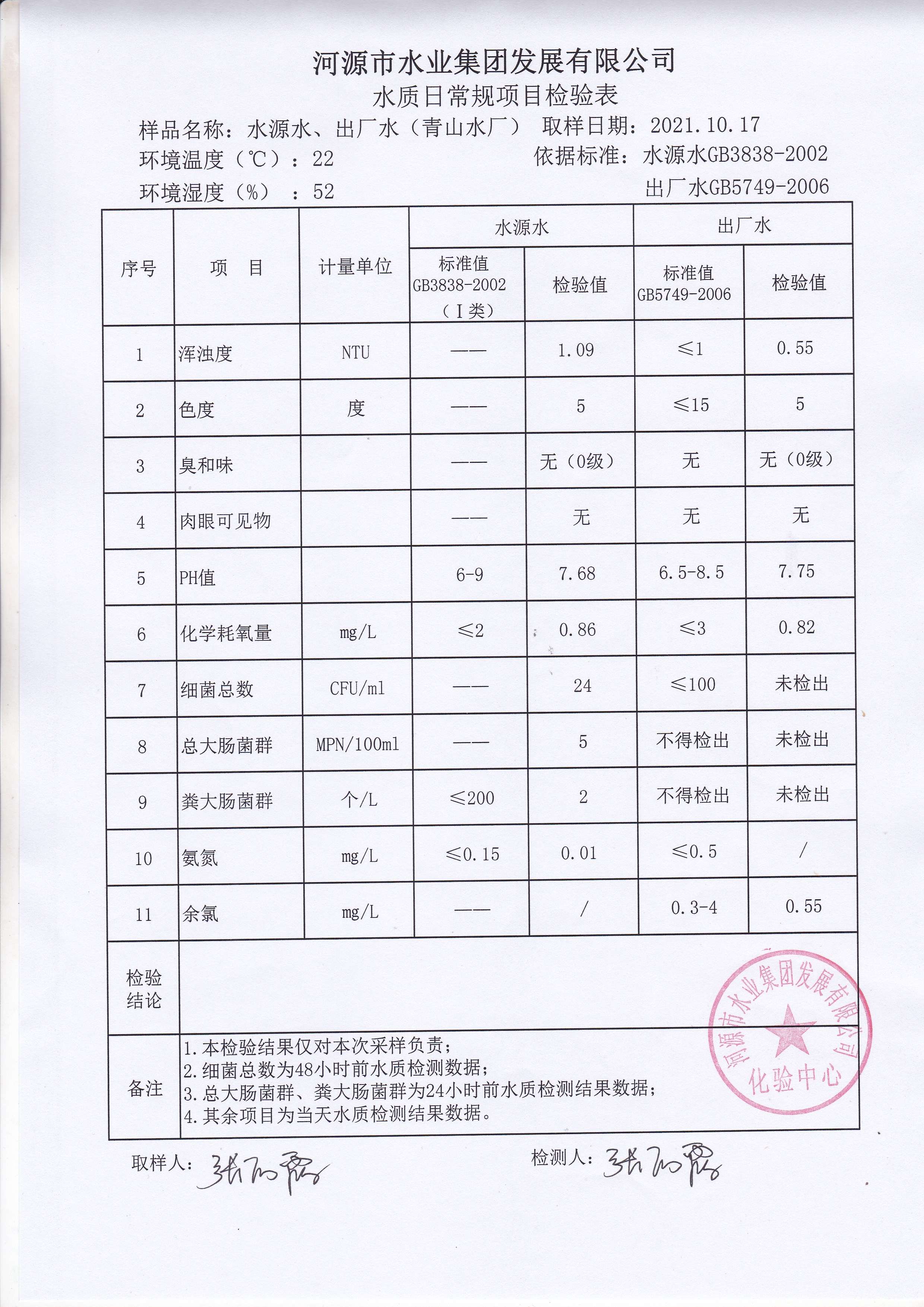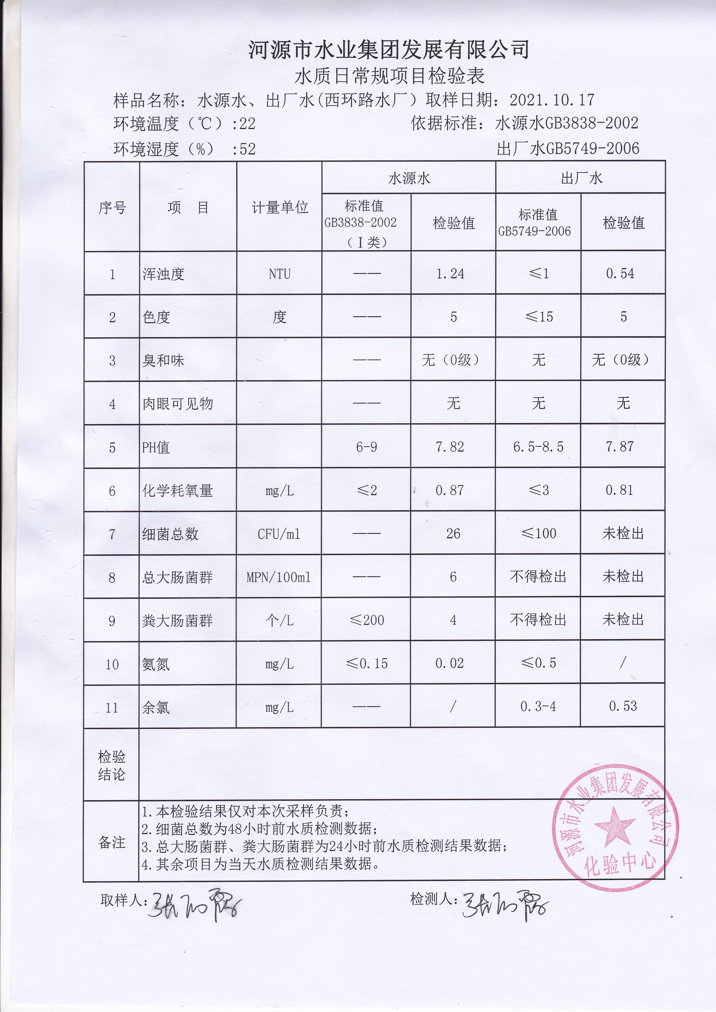 2021年10月17日水質(zhì)檢驗(yàn)報(bào)告