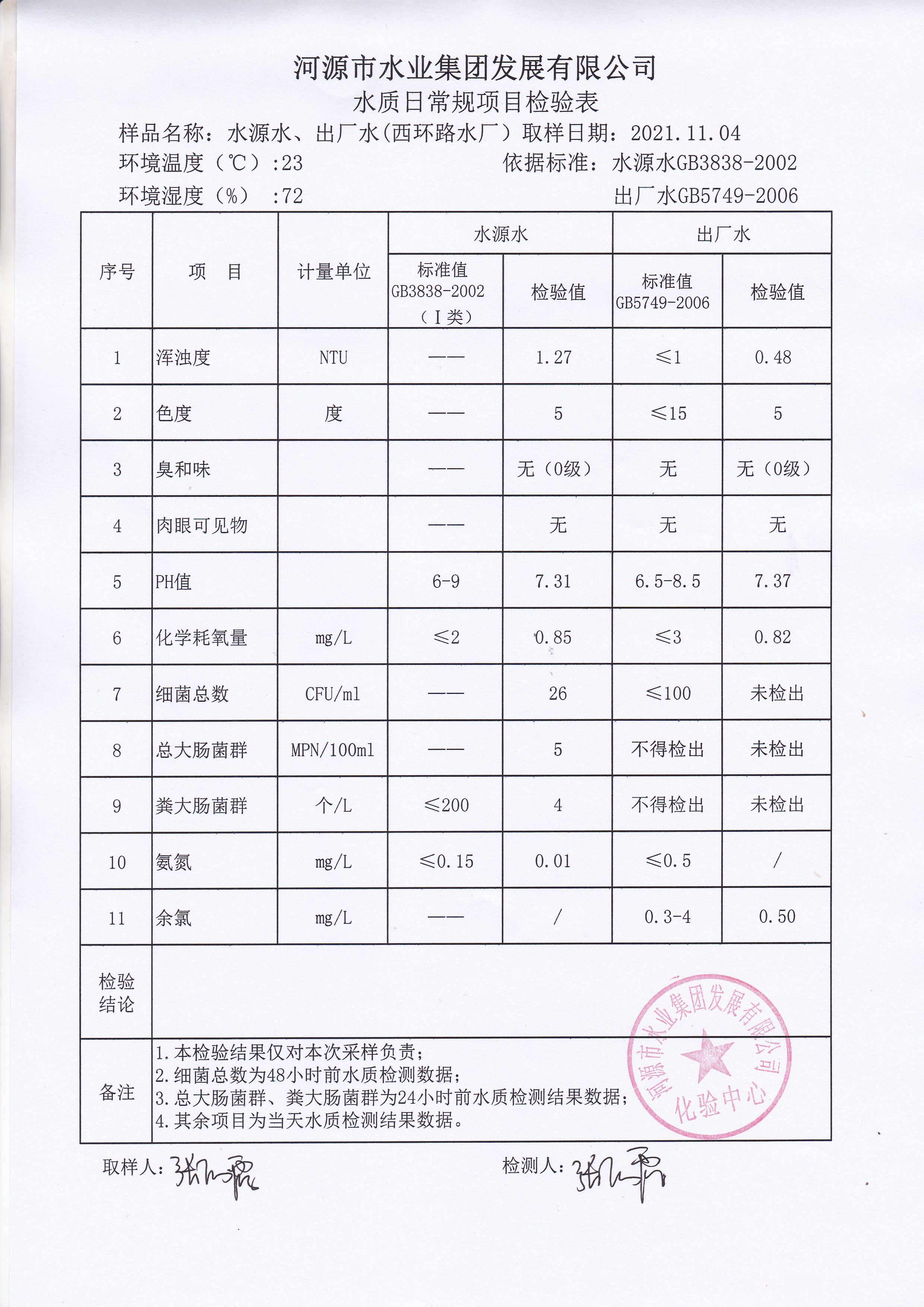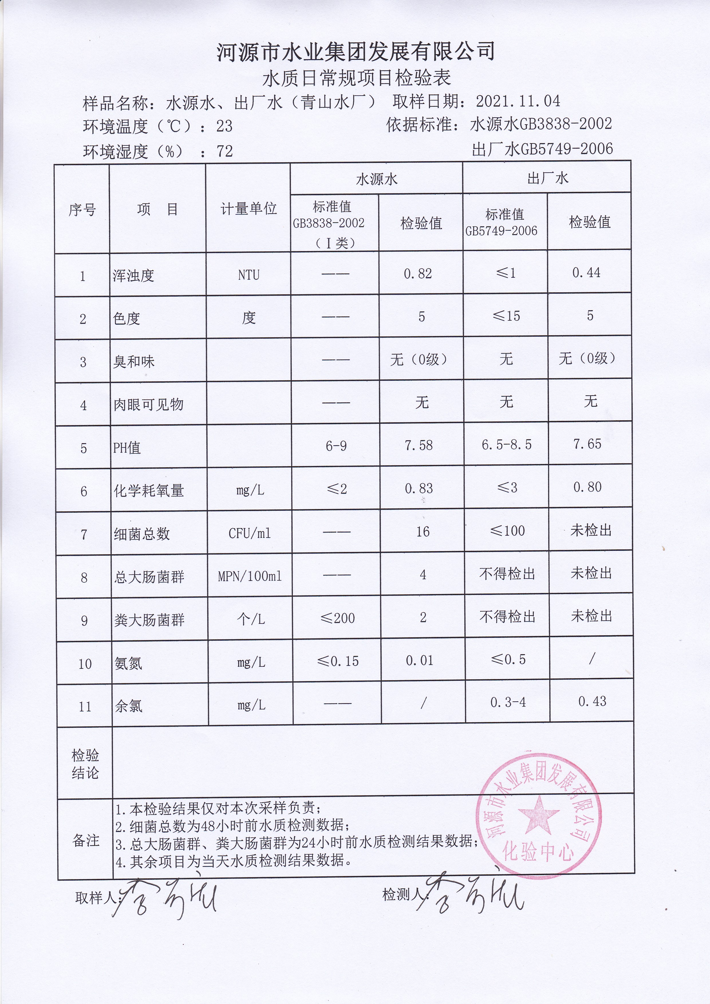 2021年11月4日水質(zhì)檢驗(yàn)報(bào)告