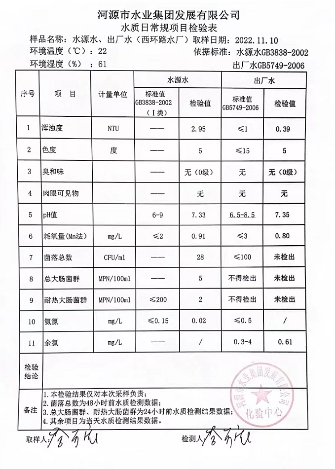 2022年11月10日水質(zhì)檢驗(yàn)報(bào)告