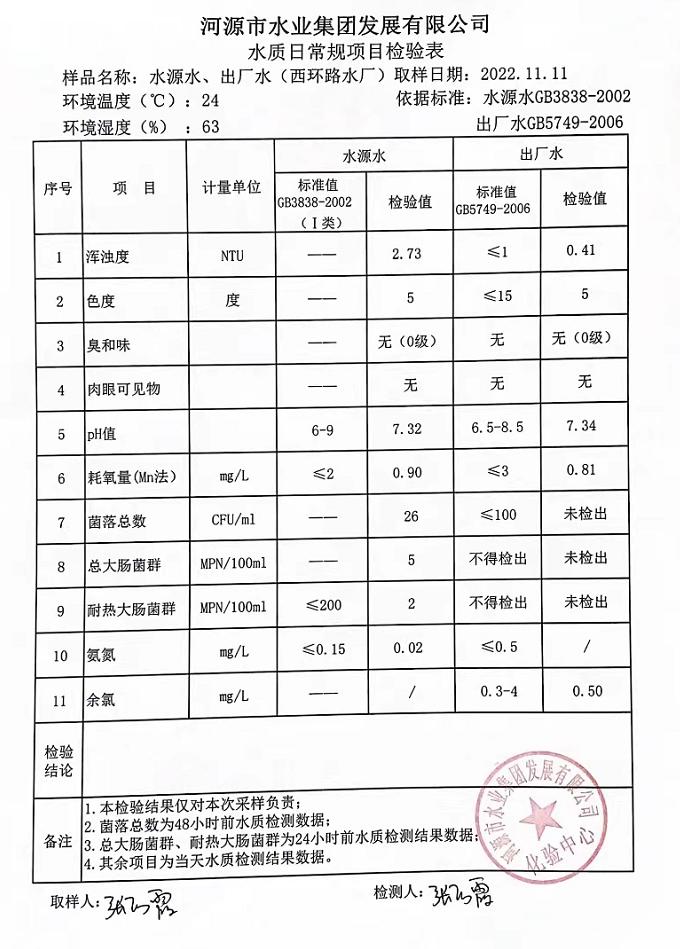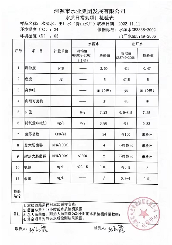 2022年11月11日水質(zhì)檢驗報告