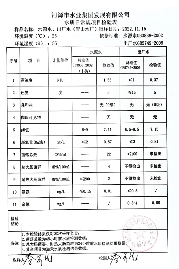 2022年11月15日水質(zhì)檢驗(yàn)報(bào)告