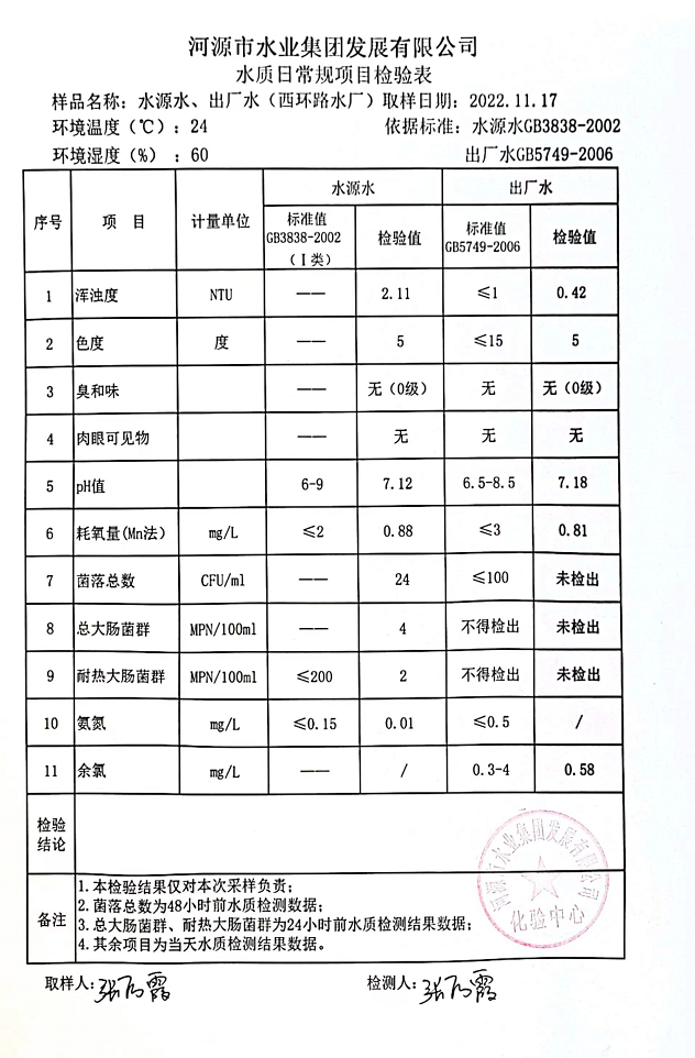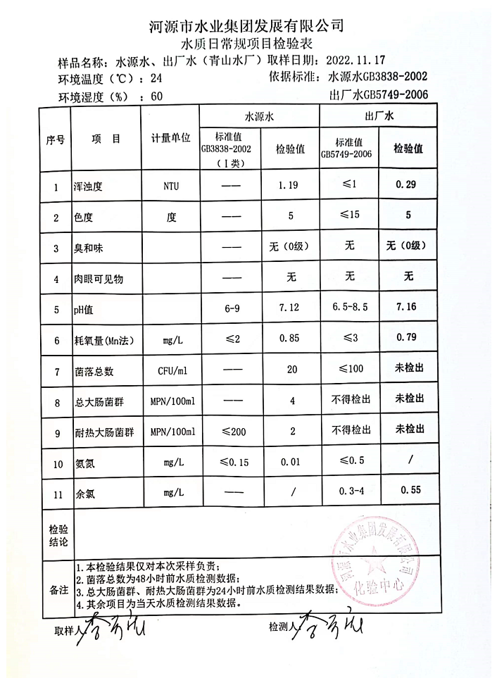 2022年11月17日水質(zhì)檢驗(yàn)報(bào)告