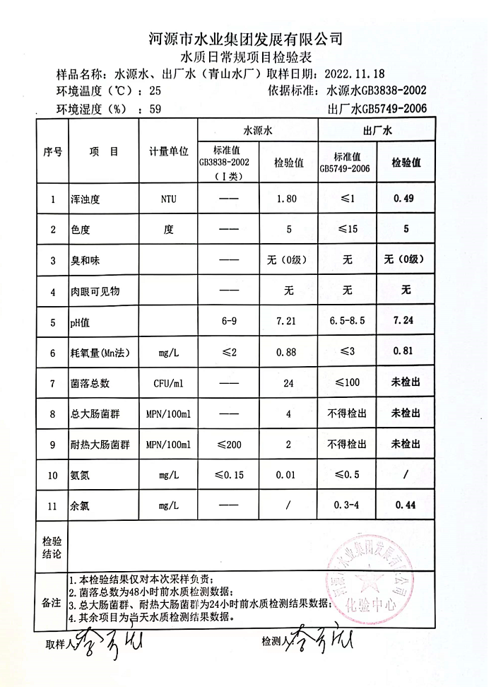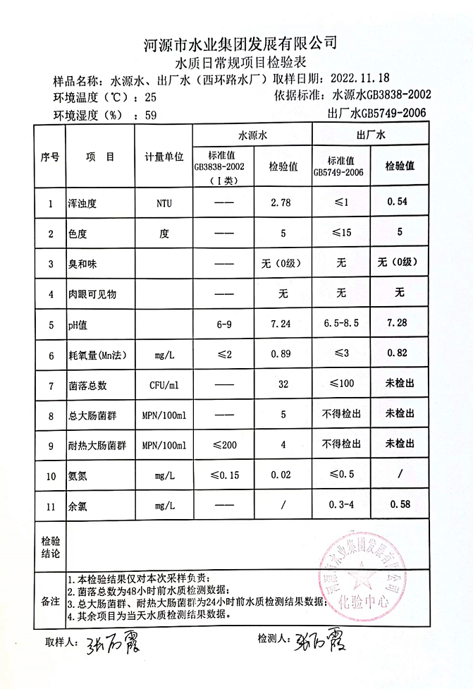 2022年11月18日水質(zhì)檢驗(yàn)報(bào)告