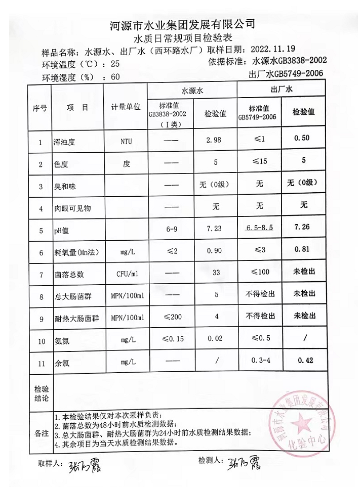 2022年11月19日水質檢驗報告