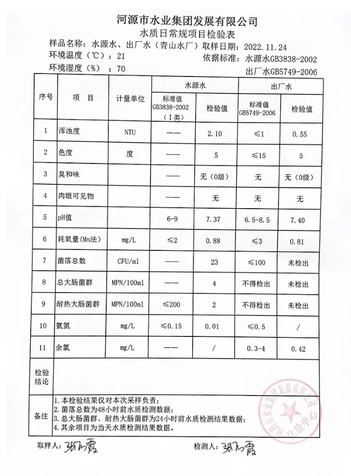 2022年11月24日水質(zhì)檢驗(yàn)報(bào)告
